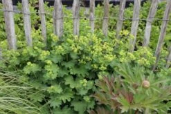Für eine Verlängerung und Ergänzung der Blütezeit lohnt es sich, im Herbst Blumenzwiebeln wie etwa Tulpen zu pflanzen. Sie sorgen Ende April, wenn die Stauden erst im grünen Laubgewand dastehen für erste Blütenfreude. Besonders geeignet für den Halbschatten sind sogenannte Viridiflora-Tulpen. Eine hohe Wand im Hintergrund lässt sich zusätzlich, auch in halbschattiger Lage, mit Kletterrosen wie z.B. der zartgelben, englischen Rose ‚Malvern Hills‘ oder der weißen Kletterrose ‚Guirlande d’Amour‘ begrünen. Ihre zarten, kleinen Blüten harmonieren perfekt mit den Farben des Beetes.
