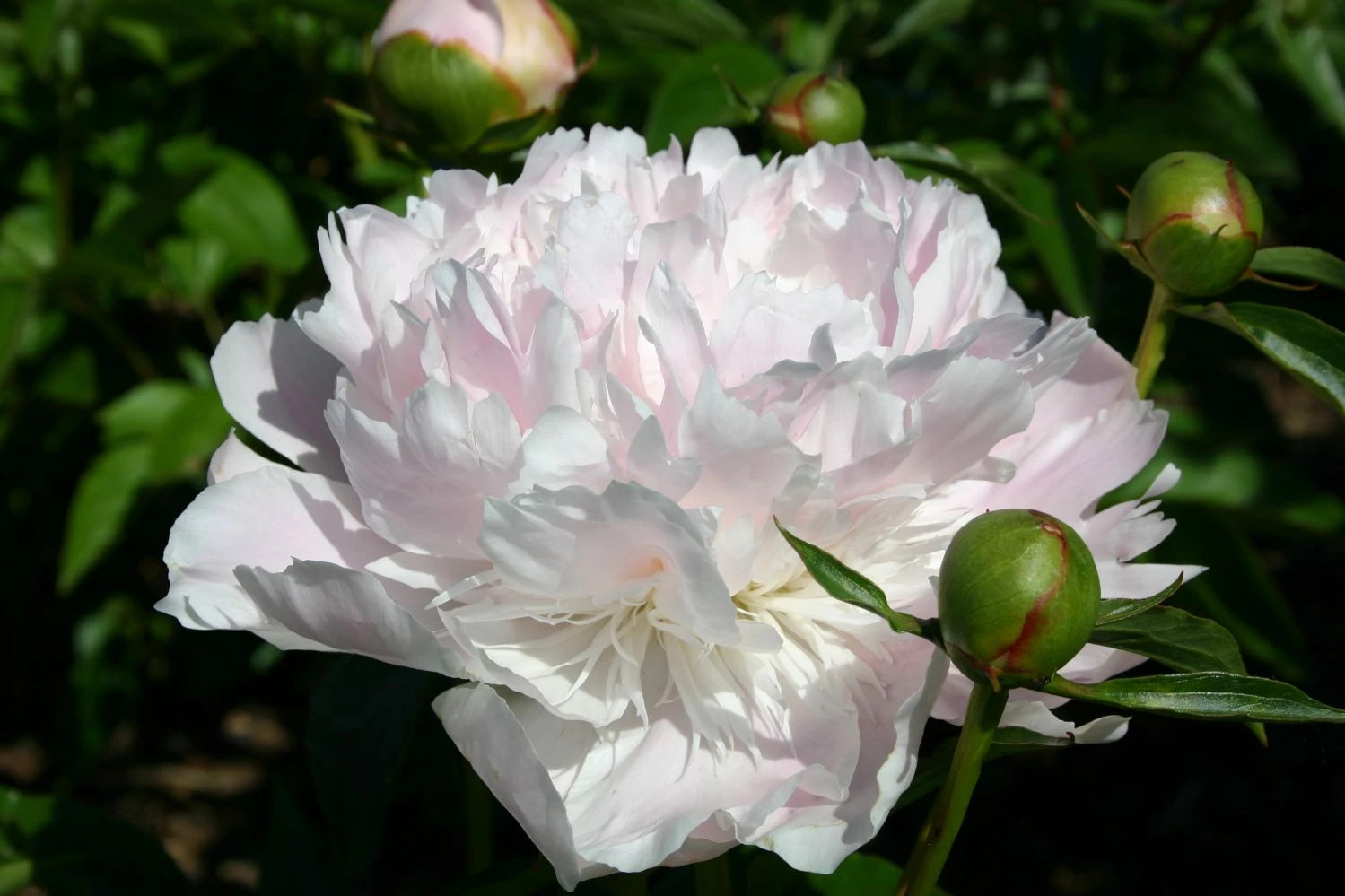 (F Calot 1867). Diese schön geformten, gefüllten, zartrosa Blüten werden im Verblühen weiß.