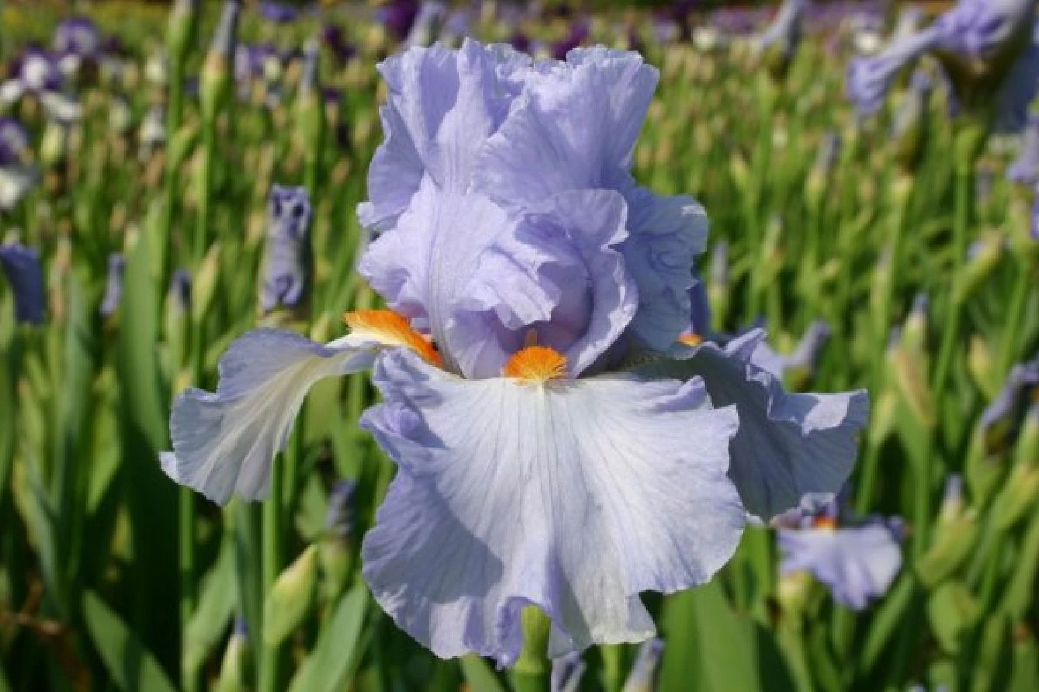 Auf einer rechteckigen Fläche tummelt sich hier eine erlesene Pflanzengemeinschaft aus zart-pastellfarbenen Prachtstauden und Begleitern, die von April bis Oktober für einen herrlichen Anblick sorgen. Ob duftende Bartiris oder weiße Edelpfingstrose im April/Mai, hoher Rittersporn und Flammenblume im Juni/Juli oder Herbstastern ab September, dieses Beet erfreut mit seinem nicht enden wollenden Blütenreigen. So viele tolle Stauden gibt es darin zu entdecken: Schwebende Skabiosen, eine cremefarbene Taglilie, blaue Lobelien und Ballonblume, samtig-rote Schafgarben, puschelige Prachtscharten, dauerblühende Prachtkerzen oder aromatische Indianernesseln. Im Vordergrund entzücken einen überreich blühender Polsterehrenpreis, feinlaubige, silbrig schimmernde Edelraute, Sonnenröschen und frühblühendes Blaukissen.