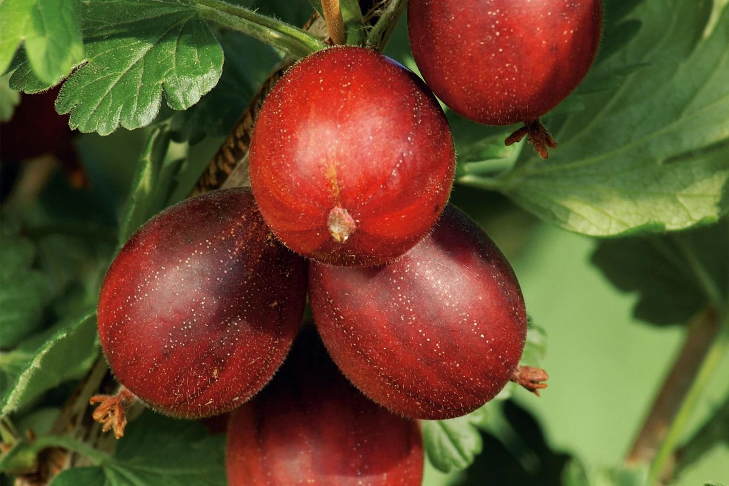 Eine leckere Ergänzung im Naschgarten ist die rote Stachelbeere ‚Hinnonmäki rot‘, die ab Ende Juli mit gering behaarten, süßen, sehr saftigen Früchten aufwartet und ein Gedicht für Marmelade und Obstkuchen ist.